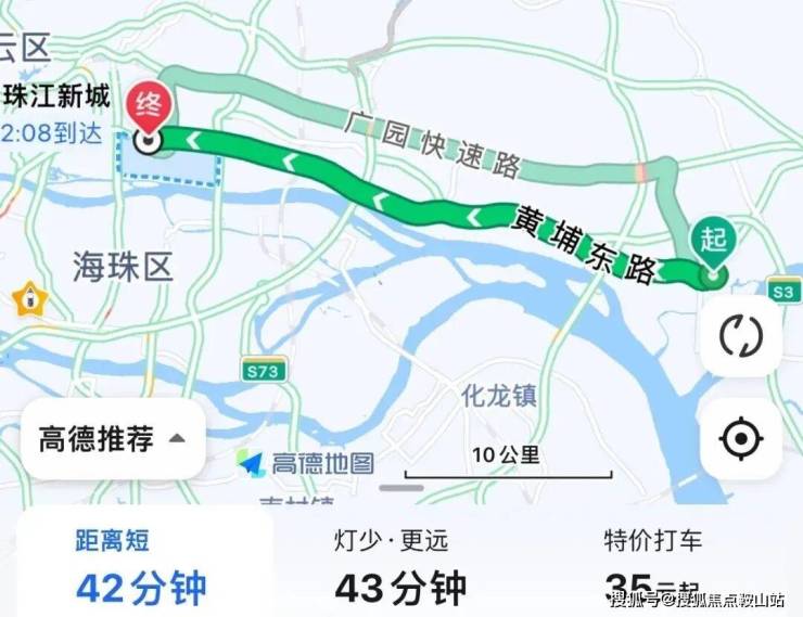 到珠江新城:出小区走黄埔东路转黄埔大道,全程24公里,不堵车情况下耗时42分钟左右。
