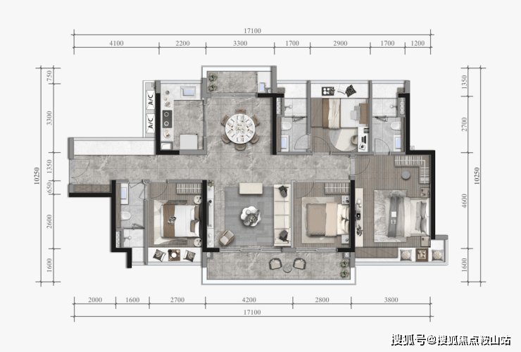 129平打造精品四房,在阔绰空间的基础上,做到全屋四开间朝南。270 °三面采光,采光通风、舒适感倍增!