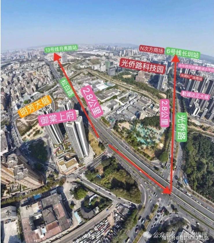 项目距离长圳TOD地铁站约3公里,北面约500米距离,松白路与光侨路交汇处口,规划有地铁18/29号线的换乘站,中远期具备轨交支撑要素,与南山近缘优势突出。