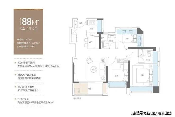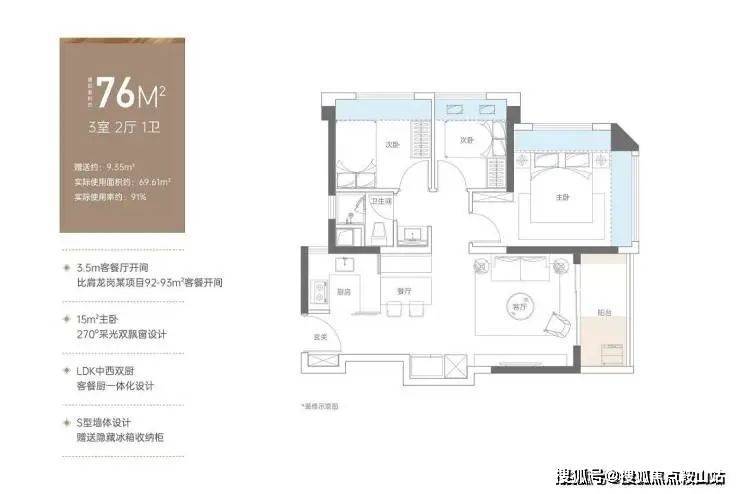 高质产品:建面约76-130㎡精质美宅,实际使用率达91-99%,更大居住空间,更高舒适度;