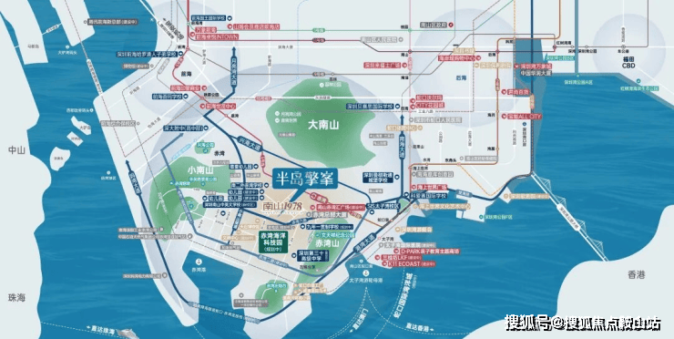依托3山1海的资源禀赋优势,以“两环、三心、三轴、六大街区组团”的蓝图规划,打造屹立深圳湾区的世界半岛生活。