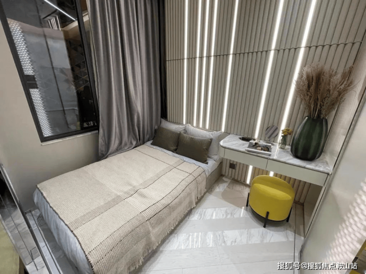 睡房设米白色条纹墙,为环境增添质感。