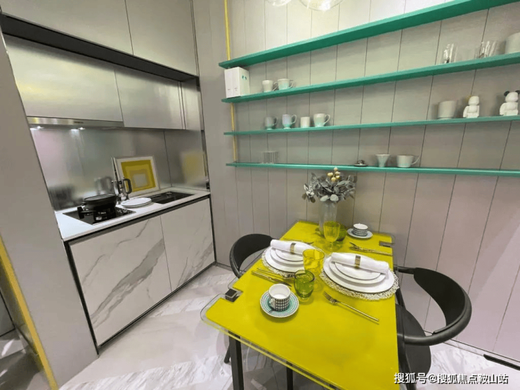 客厅以玻璃趟门连接露台,引入自然光线,发展商指,设计灵感源于大角咀昔日地形,以绿色比喻海岸线,黄色勾划小区轮廓。