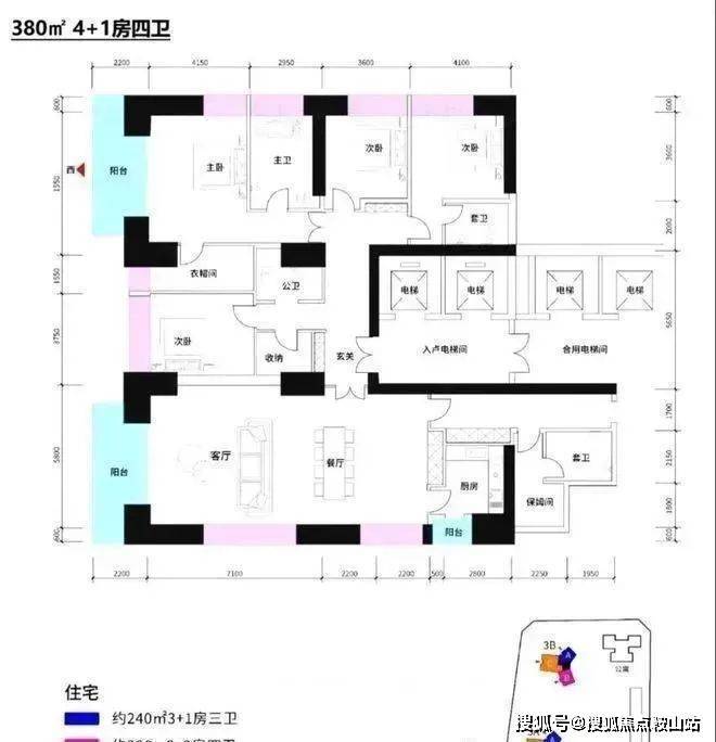 约240㎡3+1房3卫 A户型,西北朝向看名商和沙河高尔夫;