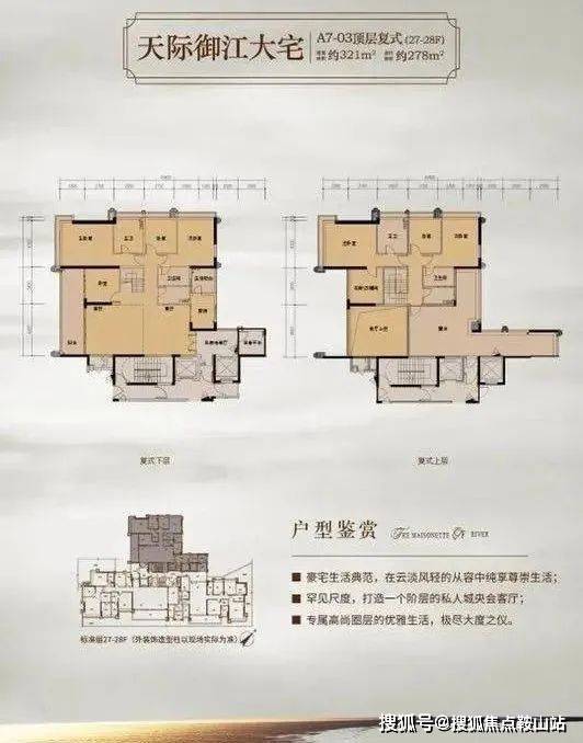 天墅产品:约28层-35层高,户型面积约360-950㎡的奢华四到五房户型;每户均特设私家入户花园,超大开间,超大阳台,无敌景观;