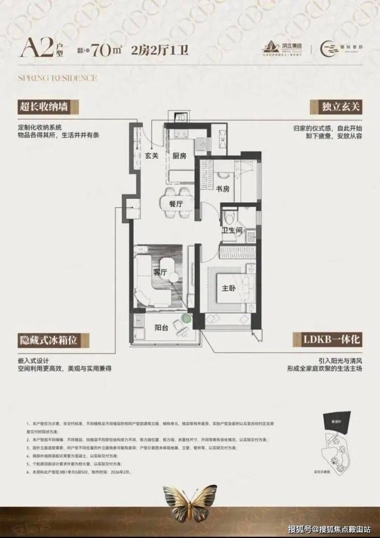 70㎡ 两房一卫(刚需上车)龙华最低门槛之一,紧凑实用,LDKB一体化,全明通透,独立玄关+收纳墙,空间利用率拉满,得房率约95%(含赠送)