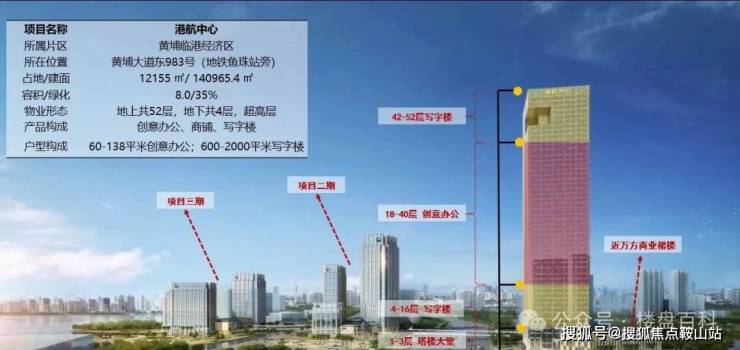 ◆广州市黄埔区广州国际港航中心项目用地分为A1地块和A2、A3地块。三个地块由北向南分别建设港航服务中心写字楼、商用物业及商业配套、五星级酒店,并利用沿江的码头岸线建设小型游艇会所等,拟建总建筑面积约38万平方米,总40亿元。 #楼盘百科