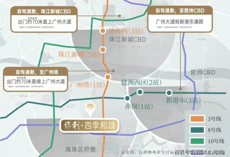 交通:3/8/10/11号线4地铁交汇,1站广州塔,2站珠江新城,3站琶洲西区;出门即广州大道,畅达珠江新城,体育西,琶洲。