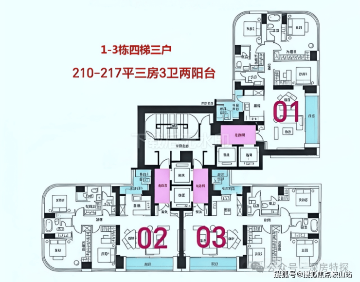 共135套,其中218㎡90套,211㎡45套,分布在C栋(51F),层高3.3米,4T3。