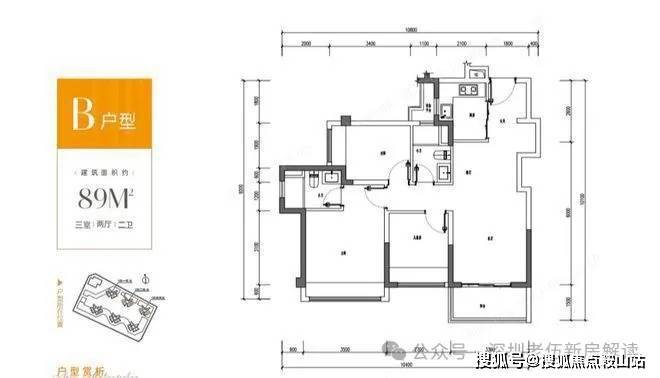 约89㎡:3房2卫,竖厅+主卧套房,动线合理,收纳体系完善;