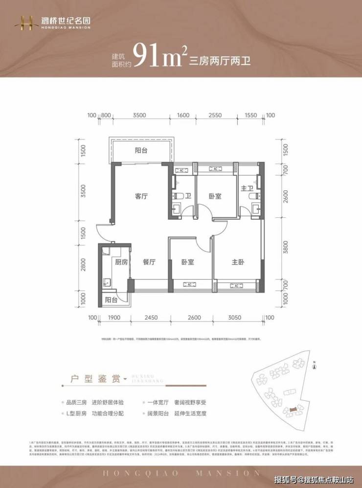 建面约89-91㎡的3房产品是主力户型。
