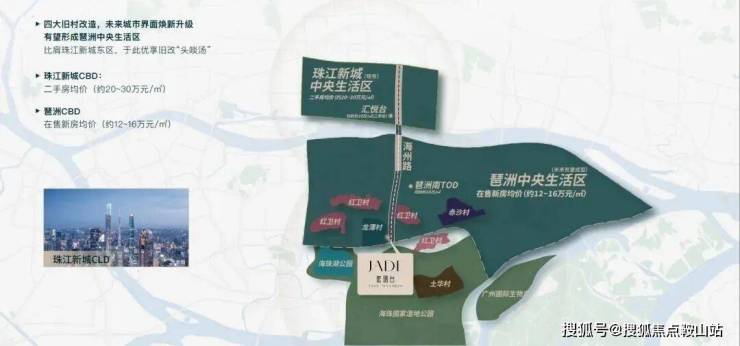 ①“珠金琶”黄金三角 广州CBD集群高地市中心“珠江新城+金融城+琶洲”构筑城市级CBD黄金三角,未来片区经济实力有望跃级提升。②“中国算谷”琶洲 世界一流数智示范区琶洲CBD,作为人工智能与数字经济试验区、广东省经济开发区,未来将打造万亿级产业集群。③“数智”龙头企业集聚 营收超4000亿琶洲进驻企业达3.4万家,涵盖腾讯、阿里巴巴、唯品会等数智领军企业,未来就业将达80万人。④ 三大世界级商圈环伺 约15min内举步即享珠金琶三大世界级商圈依靠一江两岸融合发展,有望打造成全国位居前列的世界级-超级商圈。⑤ 双TOD旗舰商业加持 繁华触手可及广州地铁地产琶洲核心区“南北双TOD”布局,未来有望打造成琶洲南部国际化旗舰商业中心。⑥ 海珠国家湿地 万亩绿意值此一域全国唯一超大城市中轴线上的国家级湿地公园,被誉为“广州绿肺”,距离项目仅约300米。⑦ 地铁11+18号线双轨交汇枢纽(1站琶洲-2站珠江新城-3站金融城)
