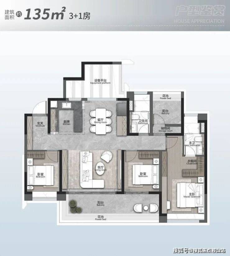 比如,约135㎡3+1房,四面宽朝南,约7.7米的超长景观阳台,尺度感更足。