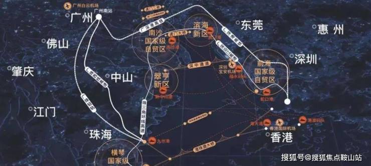具体:五大国际机场群(广州、深圳、香港、澳门、珠海)汇集、4港口(蛇口港、赤湾港、妈湾港、大铲湾港)环伺、3地铁线路换乘站(9、15、27)无缝接驳、2高速通道互联(广深沿江高速、妈湾高速海底隧道)