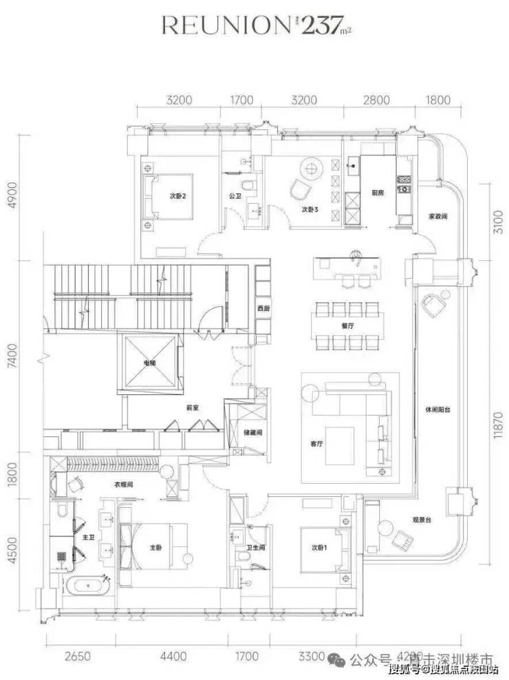 后海招商玺主打顶奢纯粹圈层,无小户型掺杂,主力面积涵盖188-247㎡纯大平层,包含197㎡四房三卫、237㎡四房三卫及246-247㎡顶奢四房,仅规划261套可售稀缺房源。全系精装交付,装标高达10000元/㎡,计入私梯厅后使用率可达95%,3.3米奢阔层高,2梯2户或3梯3户专梯入户,部分高区户型配备270°环幕视野,可俯瞰深圳湾海景,适配塔尖家庭高端居住与社交需求,后海招商玺以标杆级产品力定义顶奢人居。