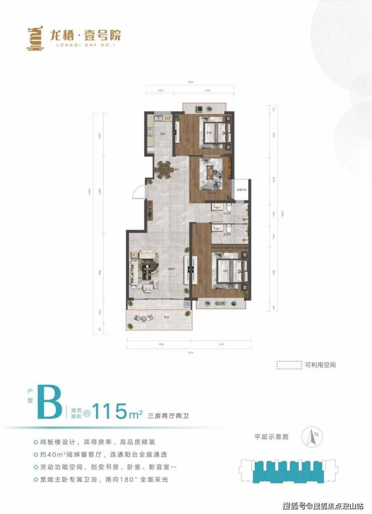 在售户型:115㎡、135㎡,三房两厅两卫