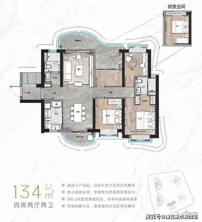 面向中央园林景观,静谧舒适
