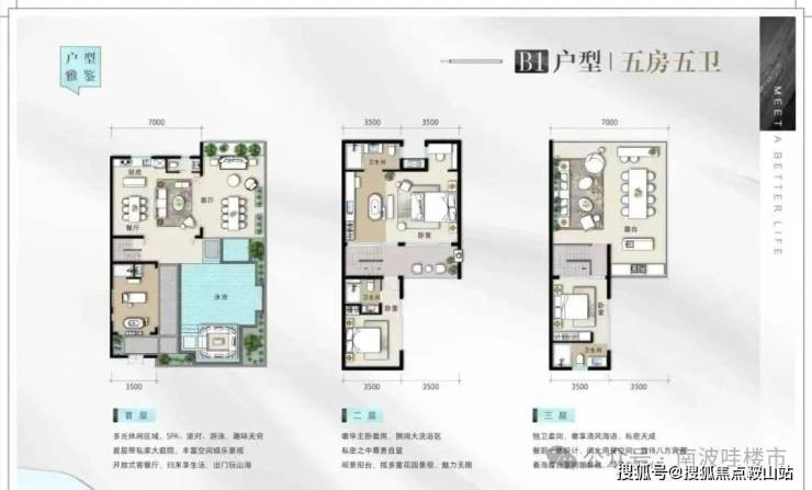 建筑面积80㎡,赠送率高达225%—400%,实际使用面积270㎡—320㎡,5房5卫别墅,也可改6房。