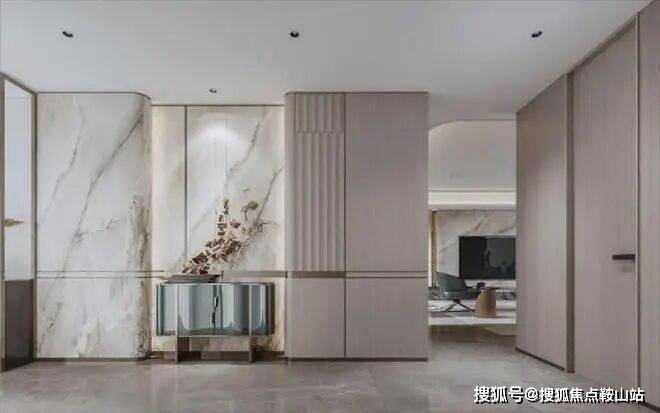 最妙的是,在约18㎡的玄关入户式走廊处,设计了两条独立动线,一条引向生活阳台,一条引向客厅,既增加了生活的仪式感,又满足了对隐私的保护。
