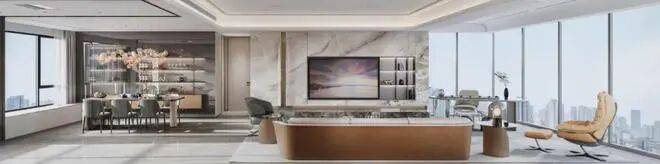 而且,客厅与景观阳台同宽相连,后期封窗,即可秒变环幕巨厅,给出了豪宅客厅应有的体面。