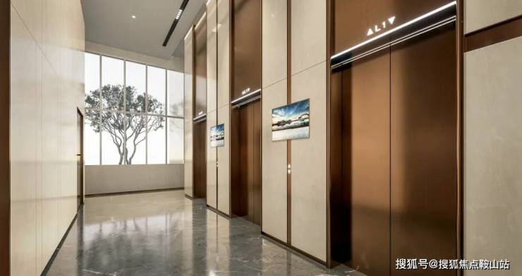 为给新贵带来更舒适的入户体验,A座大堂前厅挑高4.9米,电梯厅约为4.2米挑高,通铺大理石地面与墙面,尽显尊贵。格栅通风透气,以鹅卵石下沉造景绿植池,与室外进行绿植衔接,视野通透,达到自然和谐的效果,让归家的每一步都舒适尊崇。