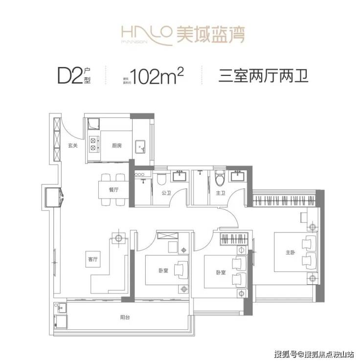 建面约98-102㎡的3房2厅2卫户型,尺度更大,奢阔主卧舒享生活,户型方正,全屋飘窗,主次卧皆享优渥景观。