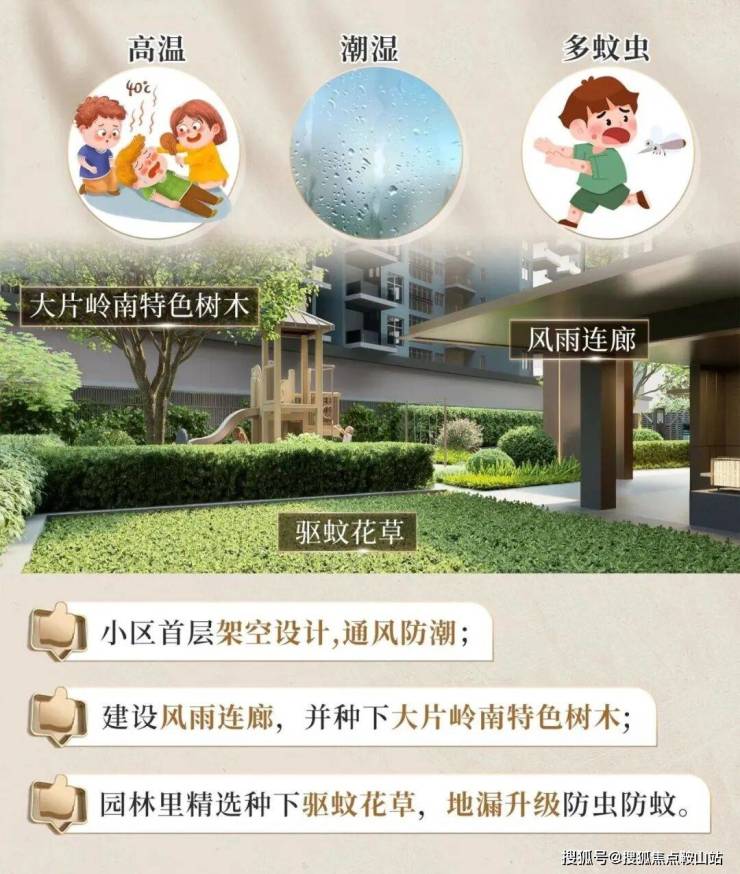 针对广州回南天的气候特色,小区首层做了立体架空设计,通风防潮;