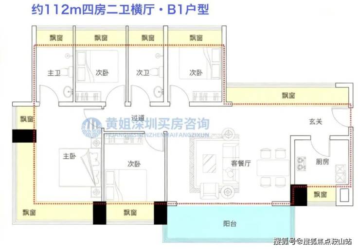 项目规划为纯四房产品,户型面积约105-188㎡,全部为精装修交付。