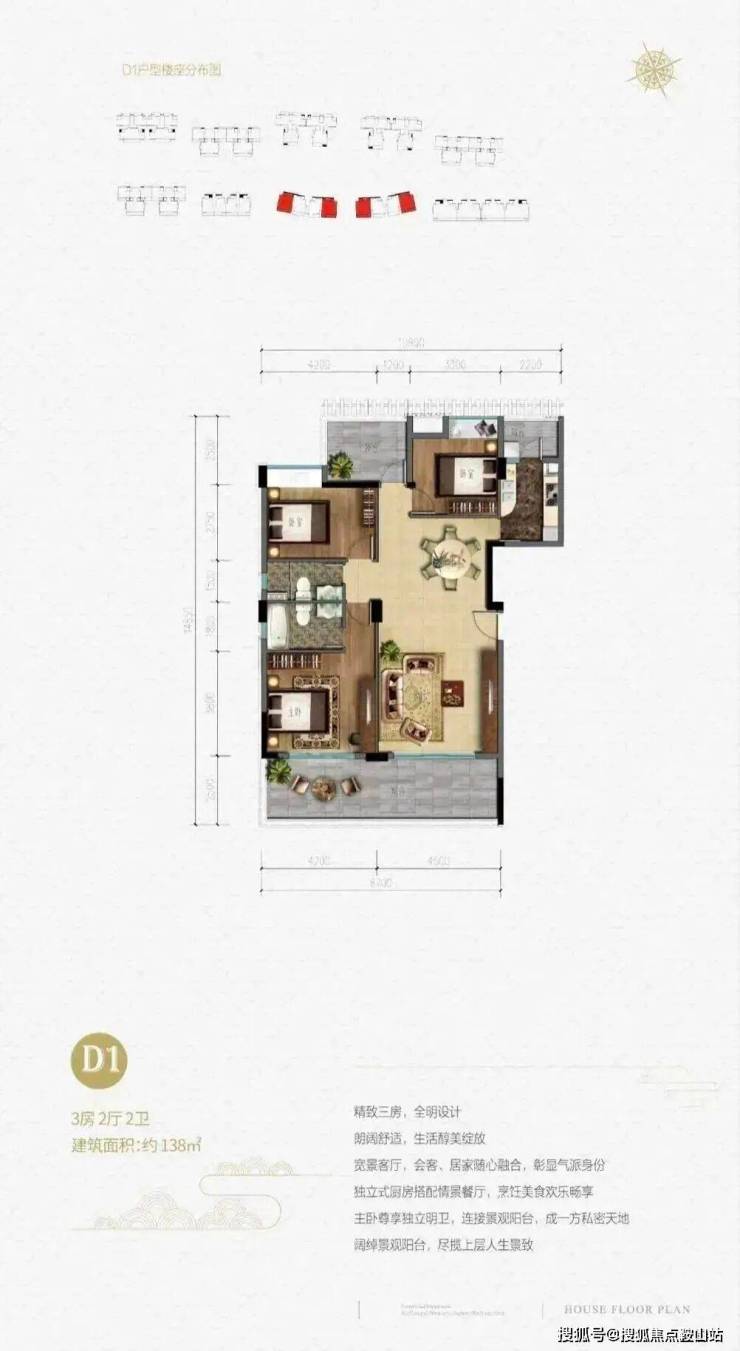 板楼,通透,两梯两户,温泉入户,平层3+ 1房户型设计,前后楼间距超大。