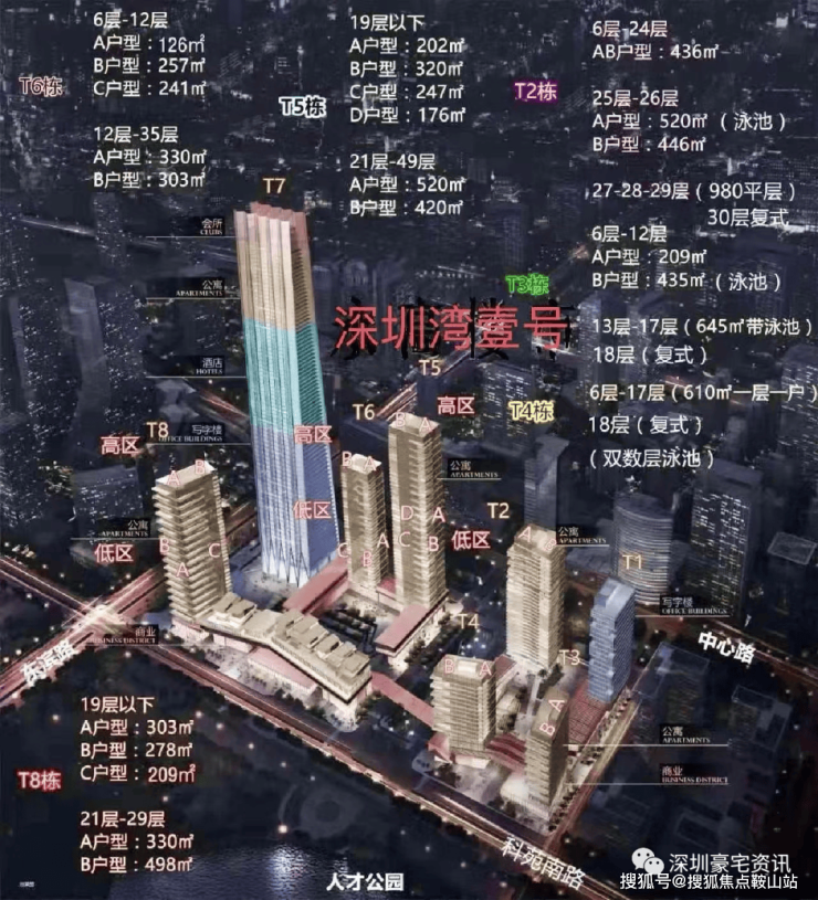 总建筑面积47.5万㎡,是集寰球商务、高端公寓、奢华酒店、高端商业于一体的高端城市综合体,特别重要的是还带深圳湾中小学学位。