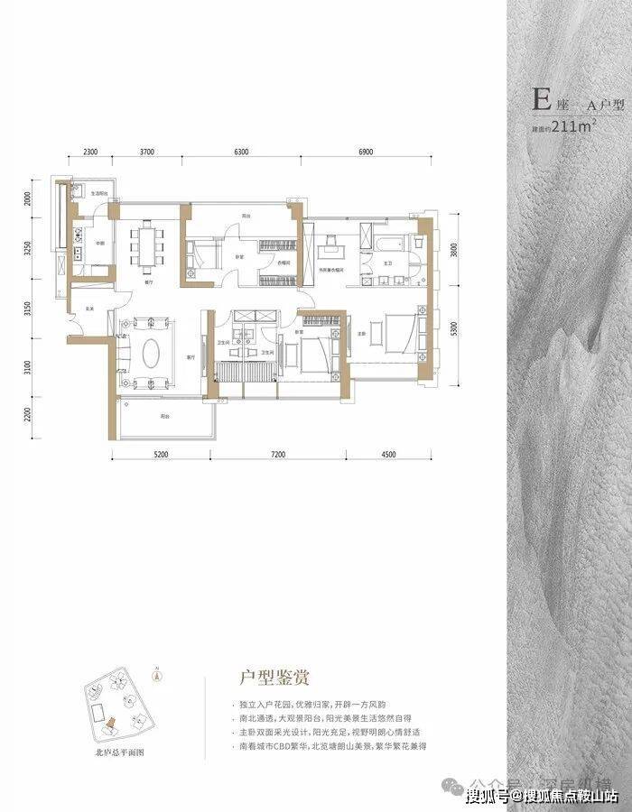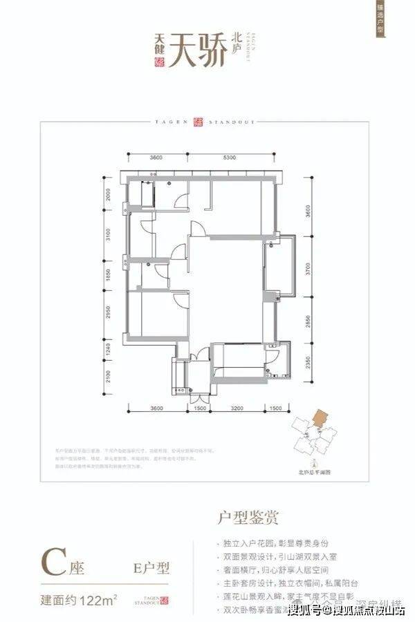 1栋E座:141.7米,44层 共123户,朝南为主,三梯三户