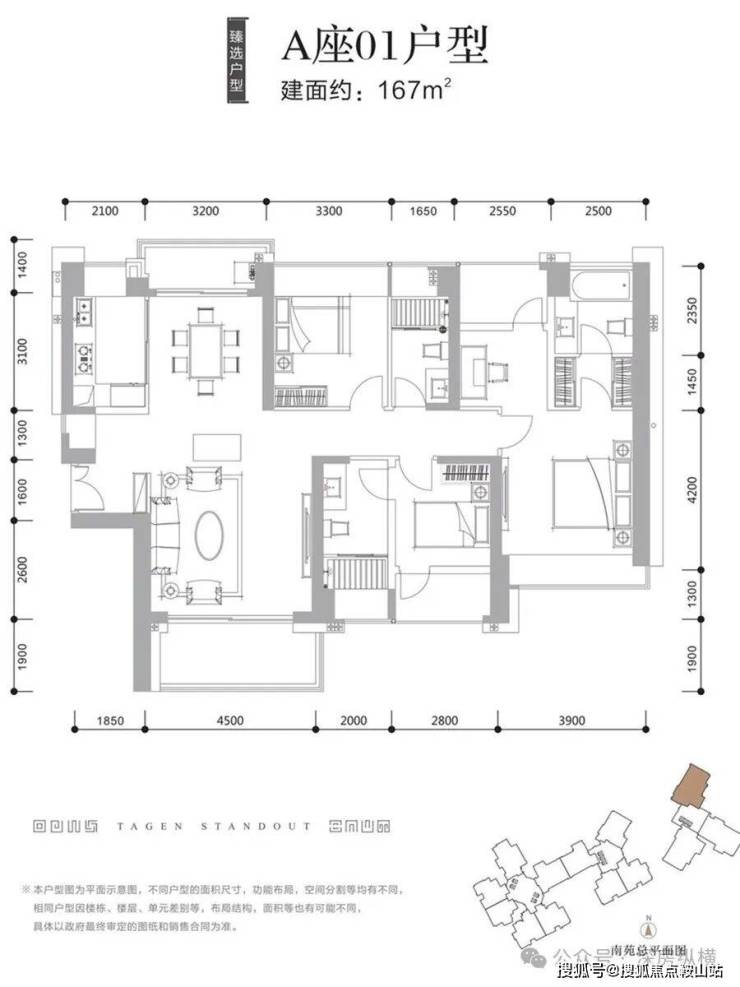 1栋A座:148米,46层,共85户,朝南为主,三梯两户