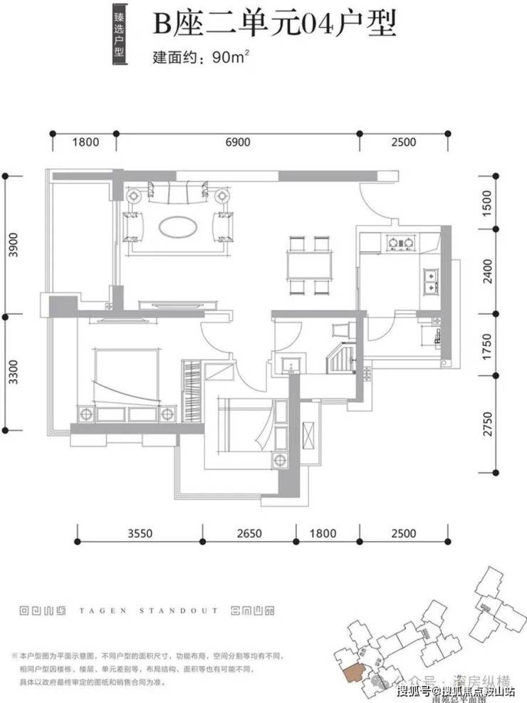 3、3个户型都格局方正、动静分区合理,客厅、房间尺度宽绰,易于精装设计和软装布置。