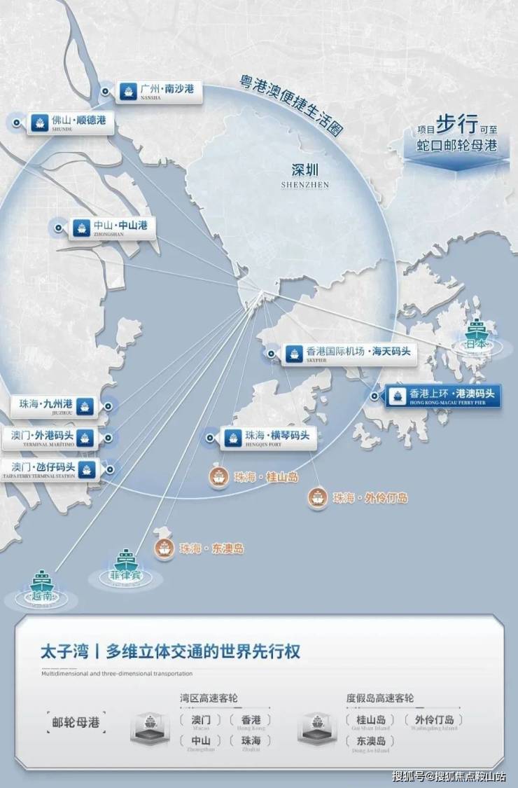 山海资源:大南山、小南山、赤湾山、微波山环伺,深圳湾“临距离”在岸,远眺伶仃洋,坐拥约15公里滨海长廊。