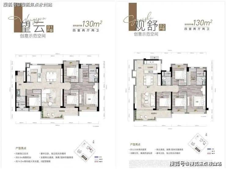 约130㎡四房两厅两卫 | 南向6.4m景观大阳台,5面宽朝南,全飘窗设计兼南北通透,LDK一体化