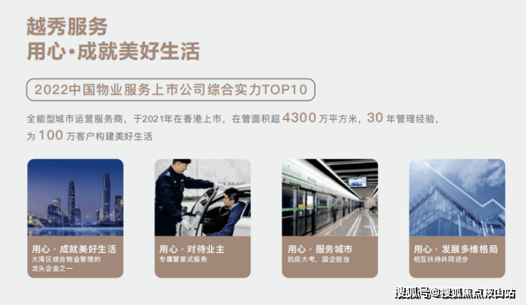 越秀物业是全能型运营服务商,2022中国物业服务上市公司综合实力TOP10,是目前唯一一家提供大湾区地铁物业服务的全国百强物业,拥有30多年物业管理经验,业务覆盖超全国20城,在管项目超200个。