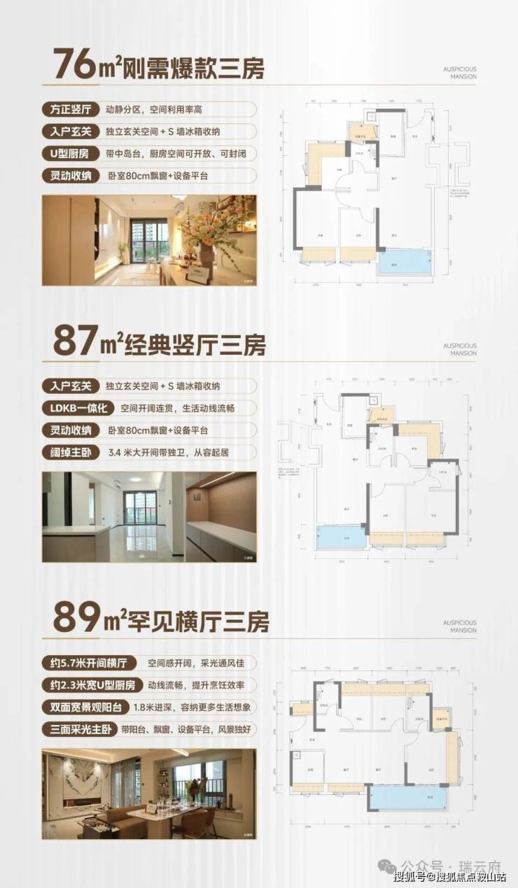 同是三房户型,差距有多大?我们如果拿一套新规房为例(瑞云府76㎡户型),对比同片区三房户型,直接拉开差距!