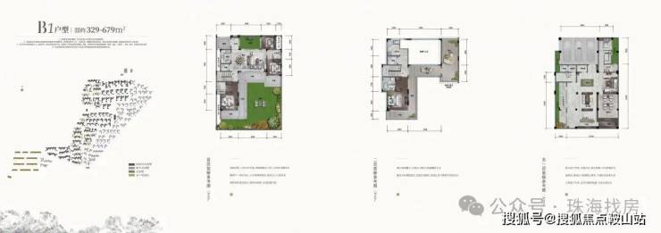 约500-1674㎡独栋别墅、约315-679㎡合院别墅,岭南至美人居,中式风格呈现;