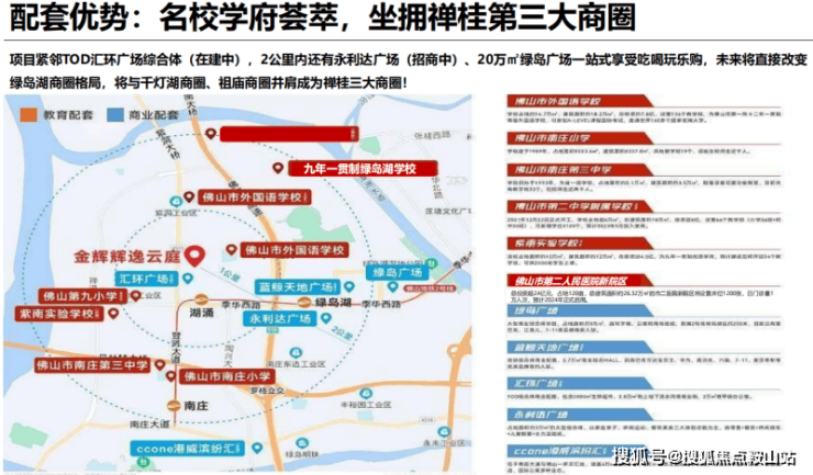 教育是项目核心卖点。项目自建18班幼儿园,对口佛山一中附属绿岛湖学校(九年一贯制公办),周边还有佛山九小西校区、佛山市外国语学校等16所资源,形成从幼儿园到高中的全龄教育链。不过需注意,随着片区入住率提升,未来学区可能调整至紫南小学,购房前建议核实最新政策。