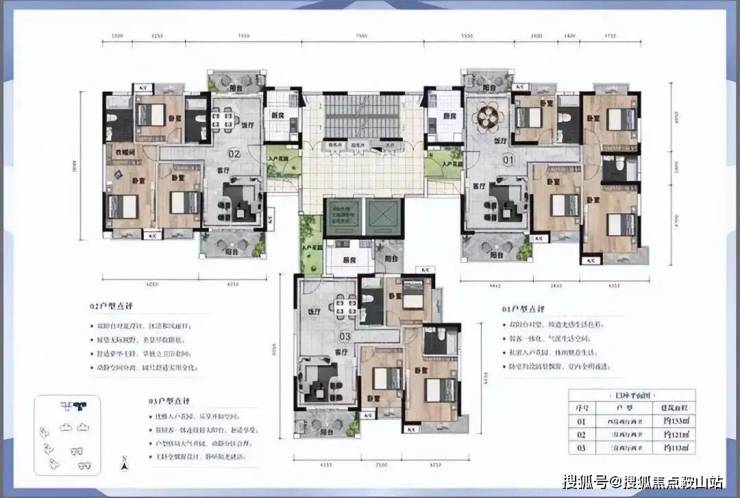 高层洋房户型设计采用现代风格,包括2种布局,2梯2户的142㎡,以及2梯4户的80-140㎡产品。