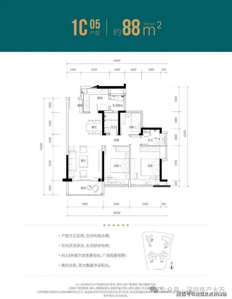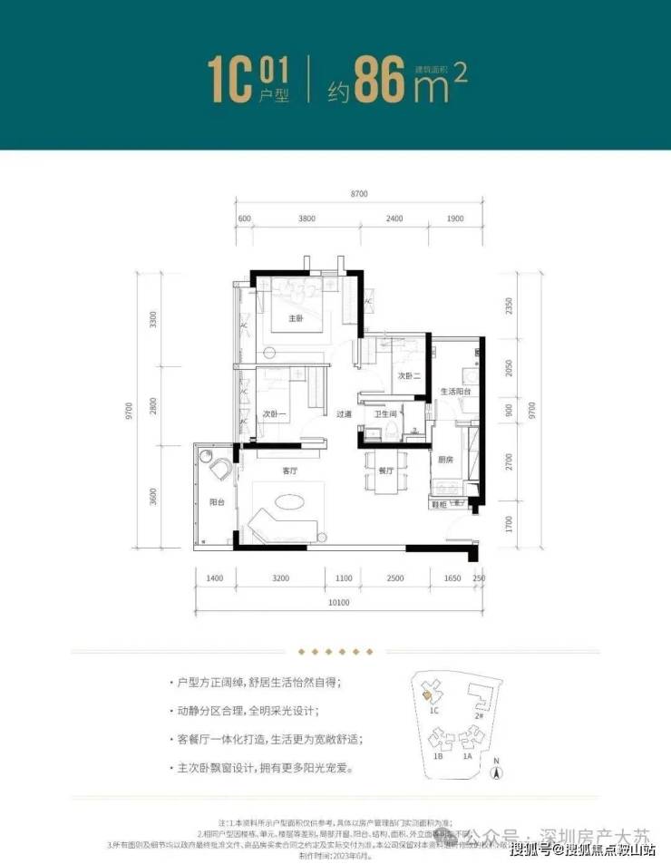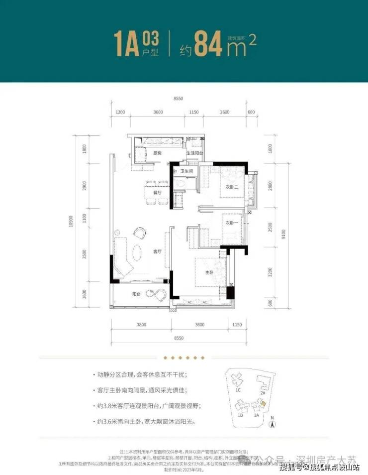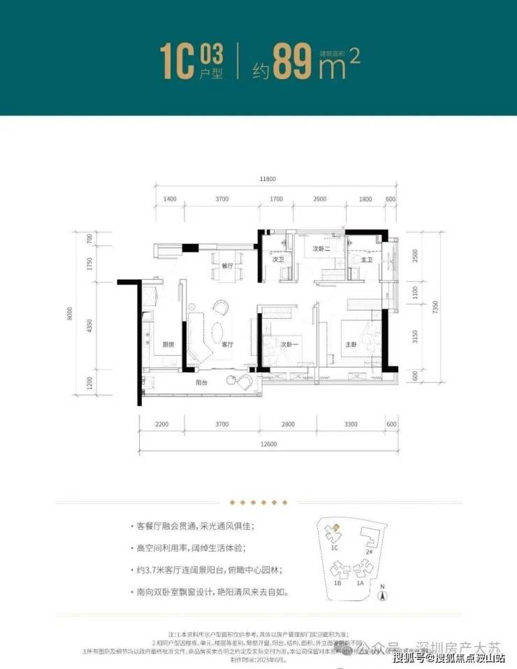 建面约82-89㎡ 舒居准现房,户型格局方正,约3.6-3.8米开阔客厅,使用率极高。
