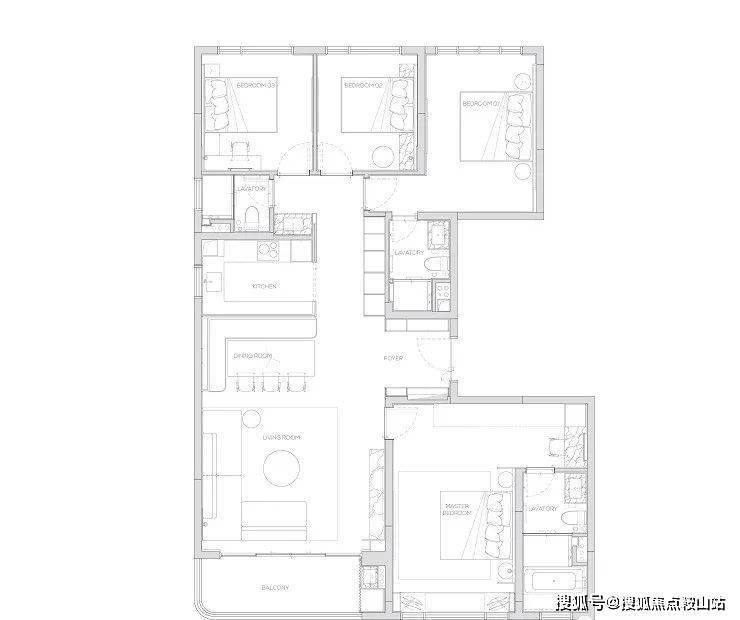264为五房两厅四卫产品,更细腻的产品设计,超奢华四件套南向主卧,标准南向次主卧, 6.6米巨型方厅,纵向超长LDK一体化空间。