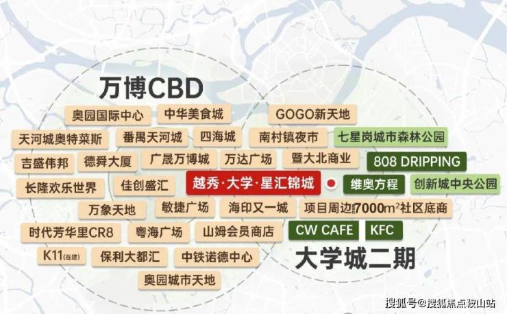 附近的话暂时没有大型商业,平时需要逛街、购物、看电影需要去万博商圈,万达广场、天河城、华润、山姆等大型商业那边都有。