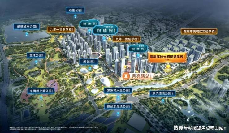 优势3 醇熟大城:配套持续兑现 享城市发展红利润宏城,规划建面约320万㎡地铁上盖 公园优教大城,集轨道交通、优质教育、城市公园、创新产业、品质居住于一体,打造“宜居、宜业、宜游”之城,自2023年动工建设以来,2年时间大城雏形已现,学校深圳市深实验明湖学校9月即将开办、茅洲河示范段已在升级中、东明大道已开通等取得显著进展,加速兑现中。①立体交通:轨道交通直线距离约600m到达地铁13号线月亮路站(建设中),1站凤凰城,9站到南山,2025年将推动13号线二期(北延)建成通车(信息来源:宝安日报),近享3纵4横公路网,咫尺松白路/东明大道双城市干道,东明大道松白路至东长路段已通车。②优质教育:社区内配置幼儿园,西北侧地块为九年一贯制学校(规划中),与项目一路之隔。大城规划3所九年一贯制学校、其中一期学校深圳实验光明明湖学校于2025年9月已开学,另项目3公里范围内涵盖深圳中学光明科学城学校、深圳市光明实验学校等。③城市公园:项目步行500m即达约60万㎡明湖城市公园,东面为约3000㎡三角公园规划中。周边2公里范围内近享约200万㎡城市公园美景,包括明湖城市公园、鹅颈水湿地公园、东坑湿地公园等。茅洲河水岸公园在建中(预计年底开放),地铁上盖公园湿地公园、凤凰文体公园在建中。其中凤凰文体公园上规划文体场馆等配套已立项。
