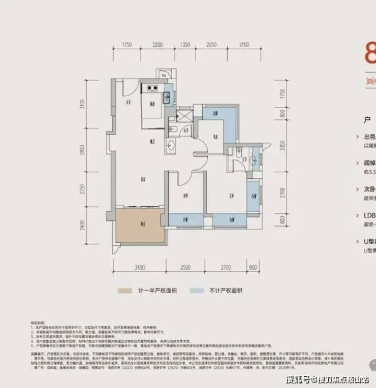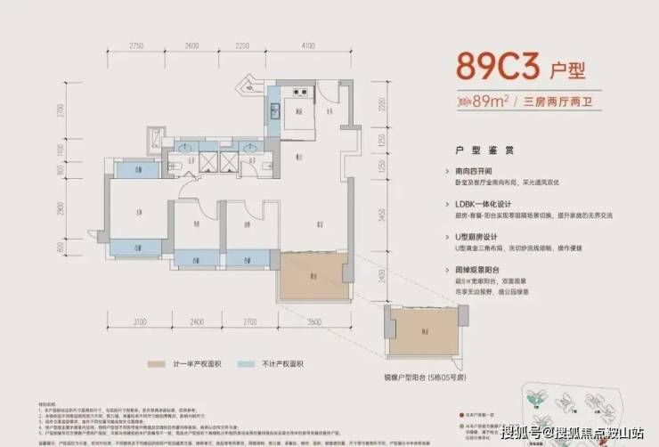 竖厅设计动静分区,约3.5米开间主卧,带独立卫生间,书房L型飘窗,多面采光更通透,U型厨房布局,流线顺畅。