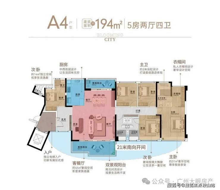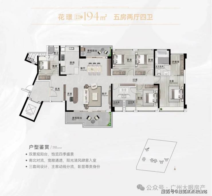 【194㎡五房2厅4卫(三套房)】南北对流双景观阳台,观景生活两不误