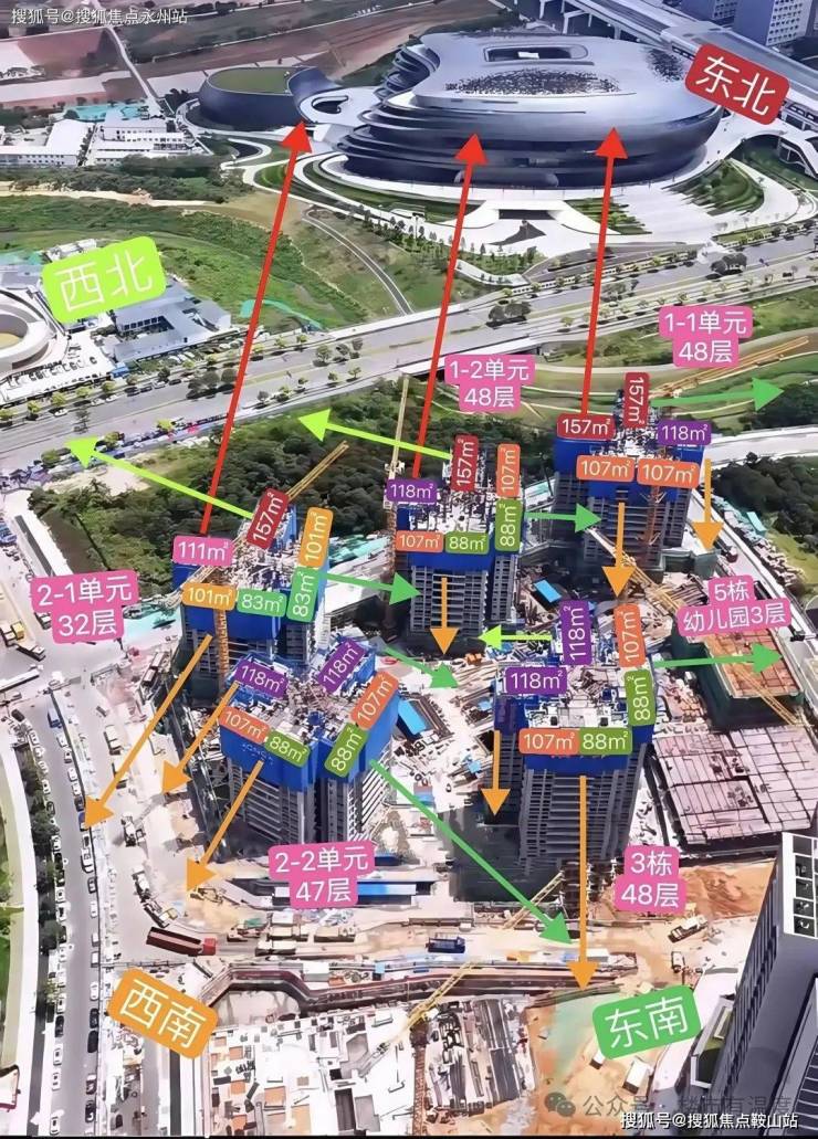 其中最好的景观是157㎡超大户型的西北朝向看科学公园以及美术馆方向,其次是118㎡东北朝向看科技馆以及科学公园北翼方向。以及东南朝向各户型景观朝向都还不错,看光明湖以及欢乐田园景观,基本没什么遮挡。