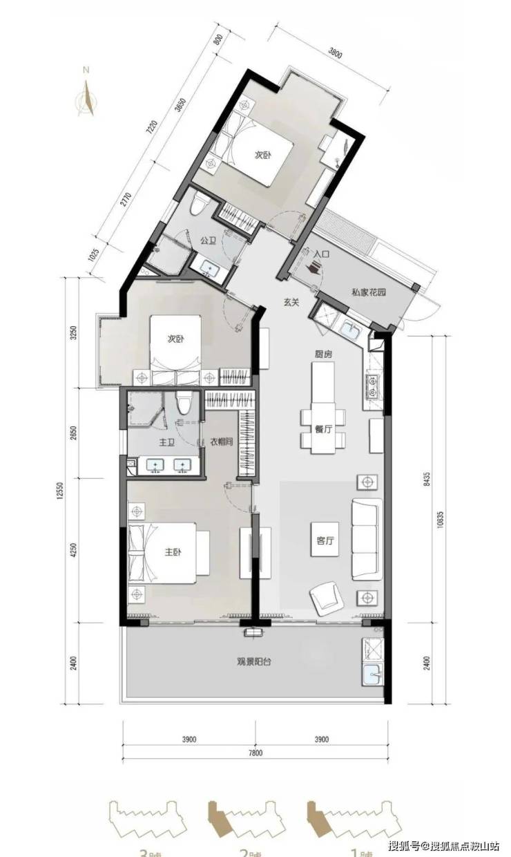 悦享20㎡观景阳台,户户南向180°观景面。