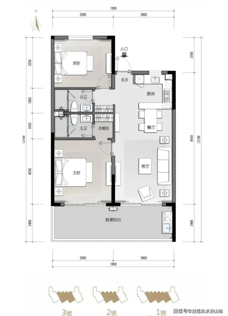 梯户比:1#楼2梯5户,2#-3#楼2梯4户