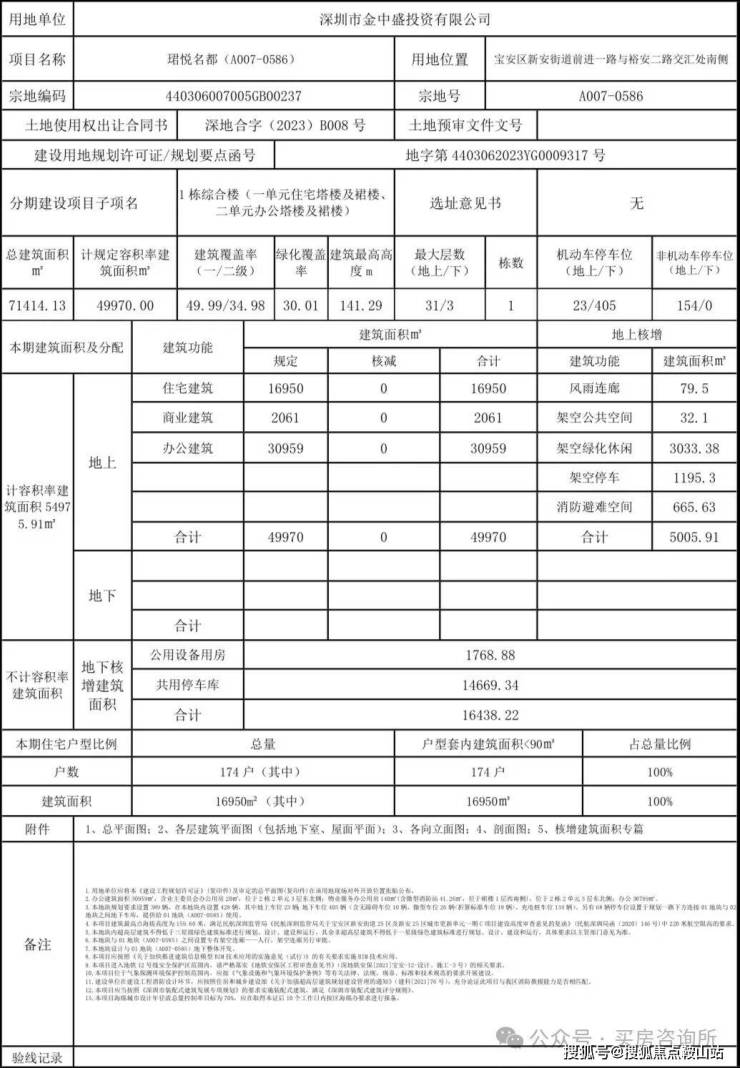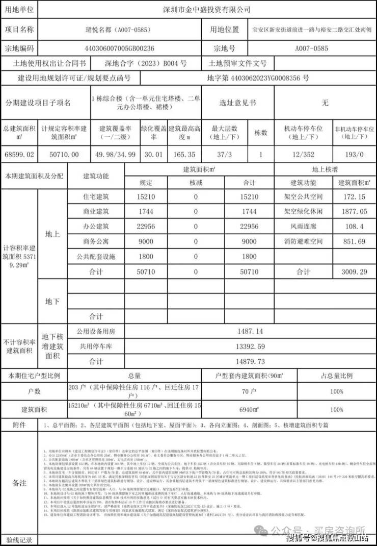 2024年1月,深圳市宝安区城市更新和土地整备局公布新安街道珺悦名都(A007-0585、A007-0586)两地块《建设工程规划许可证》及总平面图的通告。